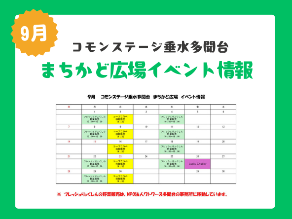 コモンステージ垂水多聞台「まちかど広場」の8・9月のイベント情報