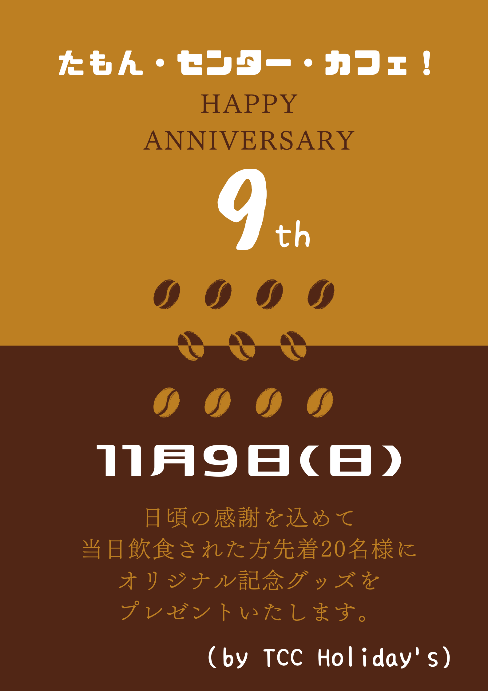 🎉たもん・センター・カフェ 9周年のごあいさつ🎉