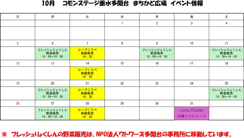 コモンステージ垂水多聞台 まちかど広場 の2025年10月のイベント情報です