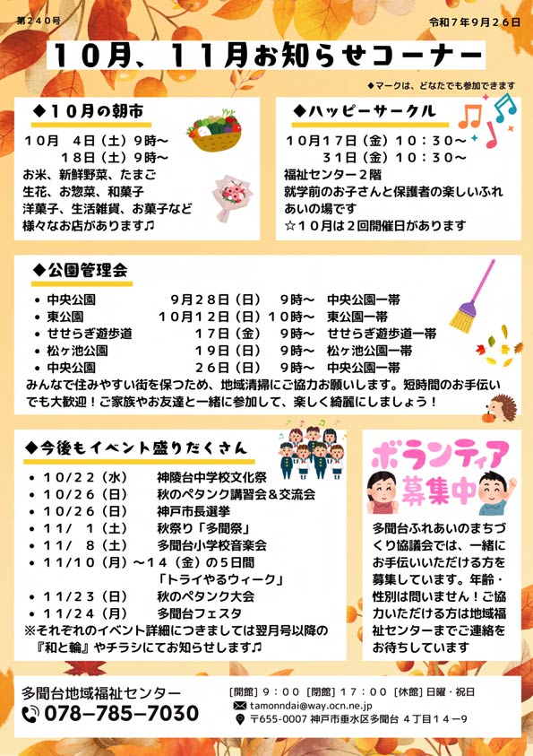 多聞台敬老のつどい についてのお知らせなどが掲載中です。